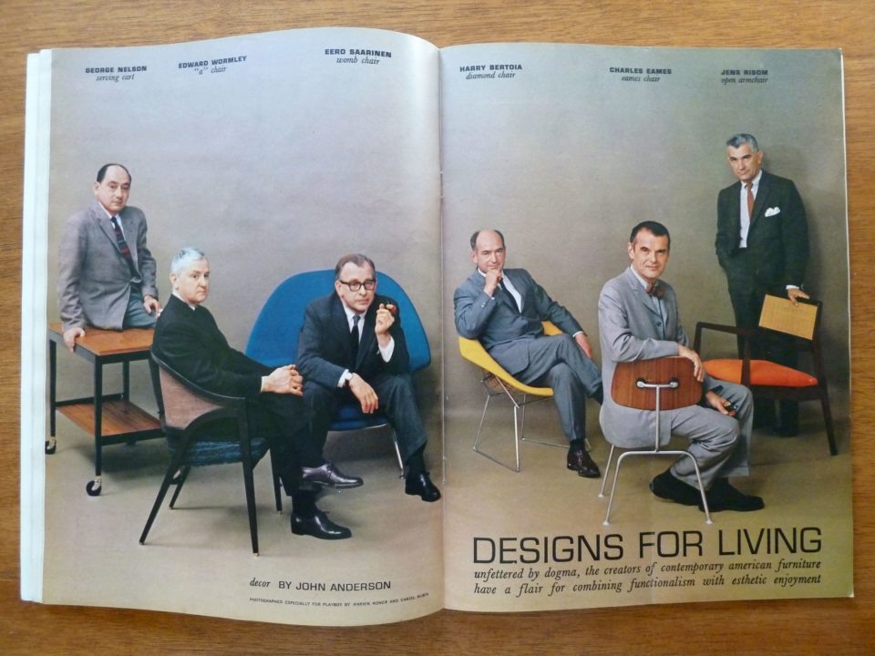 Джордж Нельсон, Эдвард Уормли, Ээро Сааринен, Гарри Бертойя, Чарльз Имс, Йенс Ризом. Съемка для журнала P..., 1961 год.