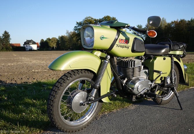 Та мотоциклетная техника, которая поставлялась в СССР, кроме венгерских и чехословацких моделей, должна была иметь особое разрешение на ввоз. А эти бумаги получить было непросто. Речь пойдет про мотоциклы марки MZ, сборка которых велась в ГДР. Заполучить эту технику хотели все и было это достаточно сложно. Повышенный интерес к этой технике был из-за технических характеристик. Так как они превосходили характеристики советских мотоциклов. Кроме всего прочего, конструкция мотоцикла из ГДР позволяла дополнительно использовать прицепную коляску, для перевозки дополнительного пассажира. Хотя вес мотоцикла был чуть больше 160 килограммов. Советских мотоциклов такого класса было мало. Ведь колясочные версии относились к тяжелому классу машин, управлять которыми было сложно. Те кто хоть раз управляли MZ были в восторге! В ходе последующих доработок вес конструкции был снижен до 135 кг, а мощность превысила 20 лошадиных сил. Максимальная скорость в итоге выросла до 130 километров в час. Потребле