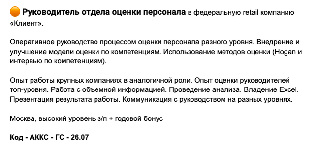 Доброе пятничное утро) Заваривайте кофе ☕ , добавьте к нему новую порцию вакансий и ваш день станет более продуктивным и интересным. Точно-точно, я проверяла. Причем не важно: вы - опытный специалист или только начинаете свой профессиональный путь - пробегитесь глазами по подборке, вакансии найдутся не только по опыту, но и по душе. Указывайте в комментариях код, я уточню актуальность вакансии и свяжу вас с нужным рекрутером. Для этого понадобится ваше резюме. Оставайтесь … подборка новых вакансий каждую пятницу ⏰. 🟠 Помощник директора (госслужба), подойдет для выпускников ВУЗов. Отличная возможность начать свой путь в государственной службе и получить уникальный опыт. Организация рабочего дня, документооборот, коммуникация, организация мероприятий, контроль поручений. Работа в центре Москвы, полная занятость (ненормированный график), с опытом работы от 1 года или активном участии в студенческих проектах. Код - АККС - МО - 31.07 🟠 Экономист (госслужба), полная занятость Опыт раб