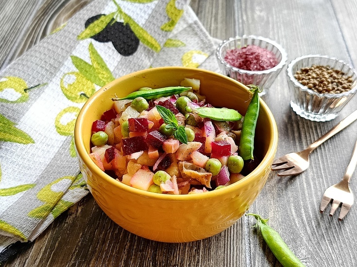 ВИНЕГРЕТ с солеными груздями и свежим горошком