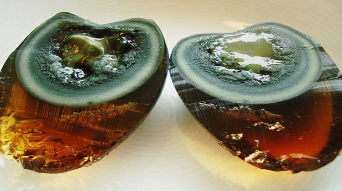Это ферментированные яйца, которые пользуются большой популярностью в Китае. Для приготовления блюда используются утиные либо куриные яйца. Они погружаются в щелочной раствор. В процессе приготовления в смесь не должен попадать воздух.