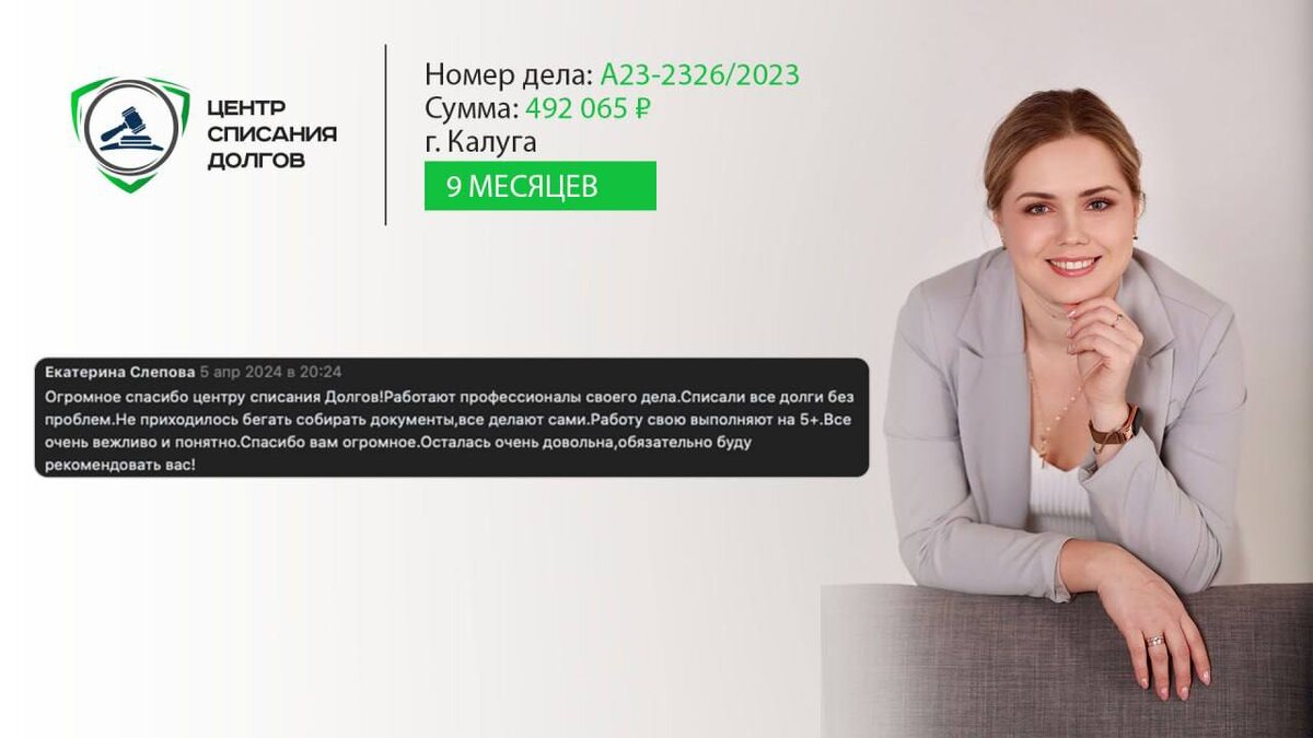 Мы рады сообщить, что нашей клиентке, Екатерине Сергеевне, удалось списать долг в размере 492 065 рублей через процедуру банкротства физических лиц! Хотите избавиться от непосильных долгов? Мы поможем! ➡️ Наши юристы проведут бесплатную консультацию и ответят на все ваши вопросы. Преимущества работы с нами: • Сбор и подготовка всех необходимых документов. • Полное сопровождение процедуры банкротства. • Защита от коллекторов и кредиторов. • Освобождение от долгов и шанс на новый старт! Не откладывайте решение на потом! Свяжитесь с нами прямо сейчас! 📞 Если вам необходима бесплатная консультация, оставляйте ➕ в комментариях.