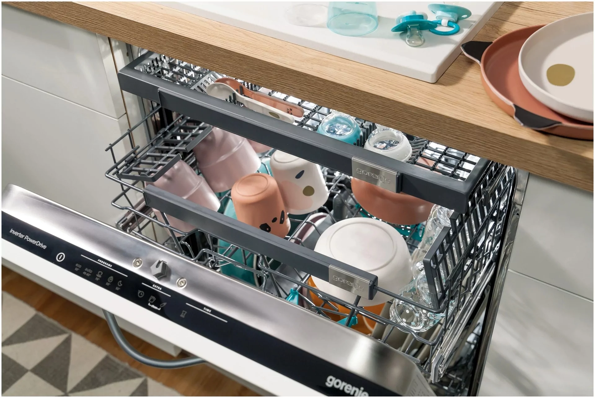 Возможность изменения высоты верхней корзины делает загрузку и выгрузку посуды более удобными.