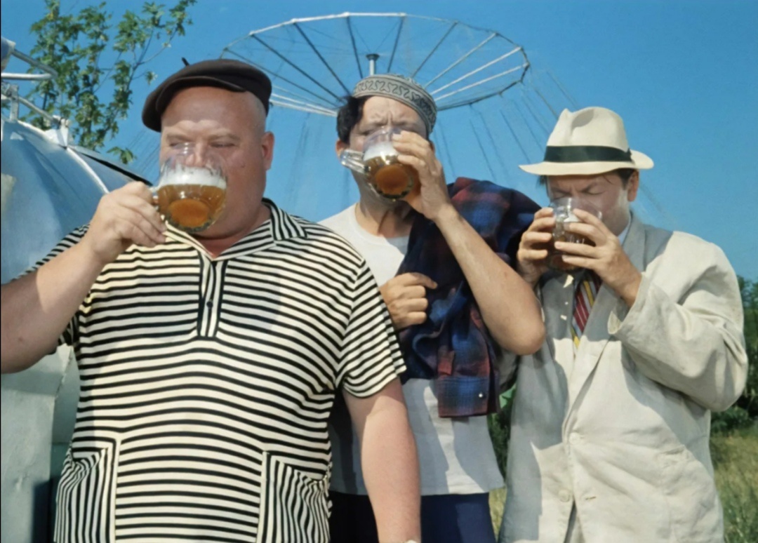 Сегодня пятница и в эфире капитал-шоу "Поле Чудес", а чем это не повод после тяжёлой трудовой недели собраться хорошей компанией, взять холодненького пивка и закусить его вкусной рыбкой. Тем более сегодня отмечается - День пива. Самый главный праздник любителей этого пенного напитка. А под пиво можно порадоваться любому другому празднику, а уж их сегодня достаточно: - Это День Воздушно-десантных войск. Ребята с праздником Вас! - День памяти святого пророка Илии (Ильин день) - День фонтанов. Кстати можно поотгадывать их в кино - И даже день республики Северной Македонии, а также много других. Как видите повод можно выбрать любой, ну а если Вам не хочется ни куда идти, а бутылочка пива ждёт в холодильнике, то спокойно начинайте проходит тесты, в которых нужно отгадать фильм по кадру с пенным напитком. Можно начать сначала с этих А затем пройти новый. Желаю удачи! Поехали!