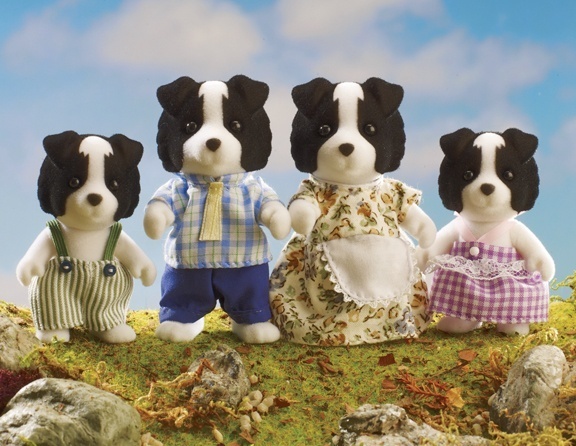 Семья бордер-колли изначально была английским эксклюзивом. Она вышла в Англии в 2011 году. На мой взгляд, собачки производителю вполне удались. Порода сразу узнается. Фамилия семьи - Флетчер. Я долго пыталась разгадать, чем был обусловлен такой выбор. В эпоху Flair фамилии обычно давались не просто так. К сожалению, ничего толком найти не удалось. Флетчер - обычная кличка для собак, которая используется в англоязычных странах. Бордер-колли считается британской породой, но была выведена на англо-шотландской границе. Отсюда и само название, так как бордер (border) означает «граница». Возможно, фамилия отсылает к шотландскому клану Флетчер? На гербе клана как раз изображена собака. Правда, это не бордер-колли, так как порода была выведена гораздо позже появления клана. Я думаю, какая-то отсылка в фамилии всё же есть, и это что-то чисто британское, так как когда эту семью выпустили под маркой Calico Critters, то им поменяли имена, а фамилию убрали вовсе. Скорее всего потому, что жител