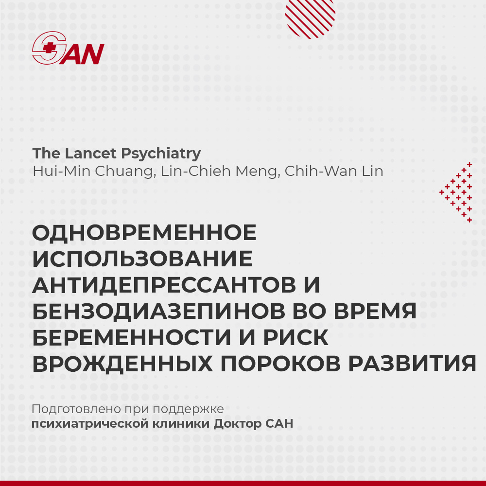 ОДНОВРЕМЕННОЕ ИСПОЛЬЗОВАНИЕ АНТИДЕПРЕССАНТОВ И БЕНЗОДИАЗЕПИНОВ ВО ВРЕМЯ БЕРЕМЕННОСТИ И РИСК ВРОЖДЕННЫХ ПОРОКОВ РАЗВИТИЯ