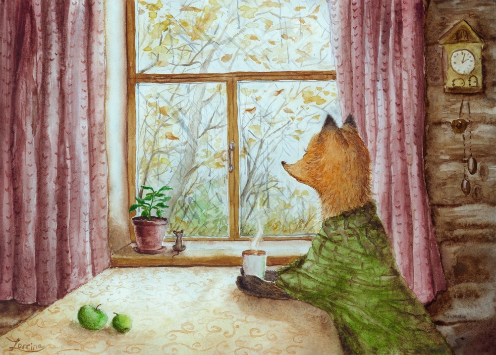 На стене тикали ходики, словно отсчитывая летние денёчки. Лиса хлебнула горяченького, плотнее сжав кружку лапками, и вздохнула. Хотя не вздыхать, а припасы пора делать. Кое-чего она, конечно, уже натаскала в нору свою. Вон и яблочки на столе, и корешки в мешочках собраны… Ей показалось, что за окном закружила пожелтевшая листва...