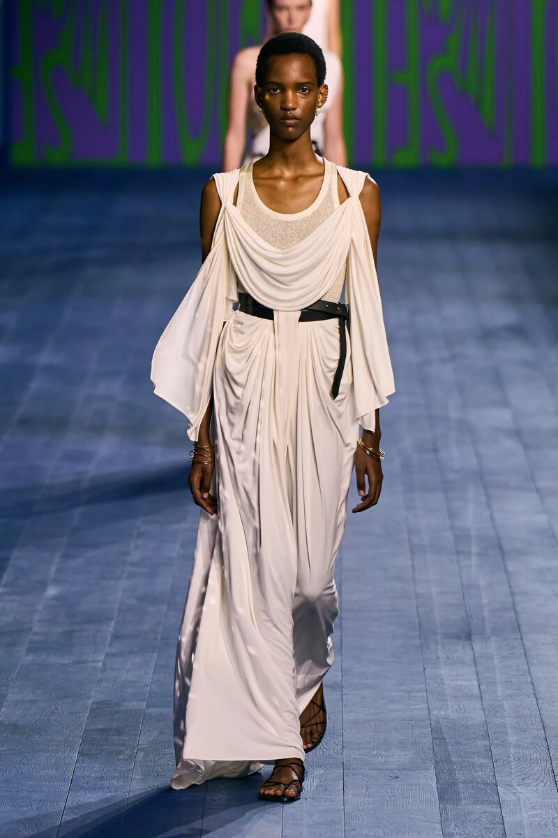 Я уже писала ранее, что многие люди в социальных сетях были возмущены такими скучными кутюрными коллекциями, которые показали Chanel и Christian Dior! И если с Chanel всё понятно, у них нет креативного директора и мастерам пришлось самим придумывать всё, а они не для этой работы нанимались - кстати, получилось даже лучше, чем это было при Виар - посмотреть можно здесь: То к Марии Грации Кьюри у меня много вопросов! Во-первых, ей нужен отдых! создавать такое немыслимое количество коллекций, которое создаёт сейчас она - это бессмыслица! Даже у Лагерфельда не было столько фантазии и сил! Во-вторых, кутюр - это про мастерство бренда, это что-то за гранью, вещи, которые в реальной жизни можно увидеть только на красной ковровой дорожке - такой посыл, такая идея! И я очень хочу в скором времени показать вам кутюрные коллекции 90-х, головокружительная красотища!! Через эту кутюрную коллекцию Кьюри хотела переосмыслить спортивную одежду, всё таки Олимпиада во Франции) Она думала о Древней Греци