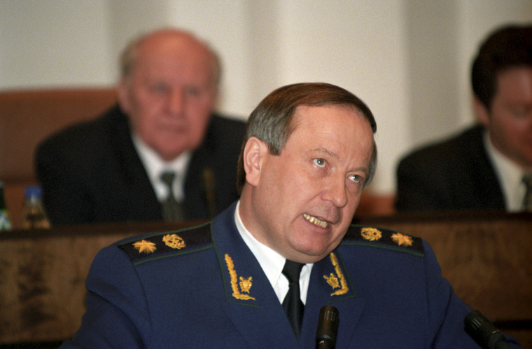 Однажды в первый весенний месяц 1999 года на телеканале "РТР" в ночном выпуске информационной программы "Вести" зрителям показали документальный фильм под названием "Трое в постели". В этом фильме, по заявлению ведущих одного из центральных каналов страны, "человек, похожий на генерального прокурора вступал в половую связь с двумя женщинами". И уже 2 апреля на Генерального прокурора было заведено уголовное дело по статье за злоупотребление должностными полномочиями.
