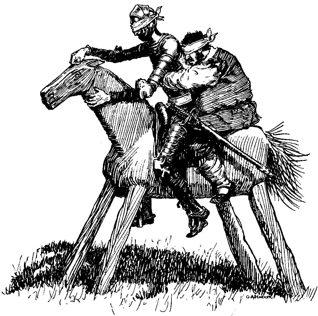 Обоим завязали глаза, и Дон-Кихот дотронулся до втулки».