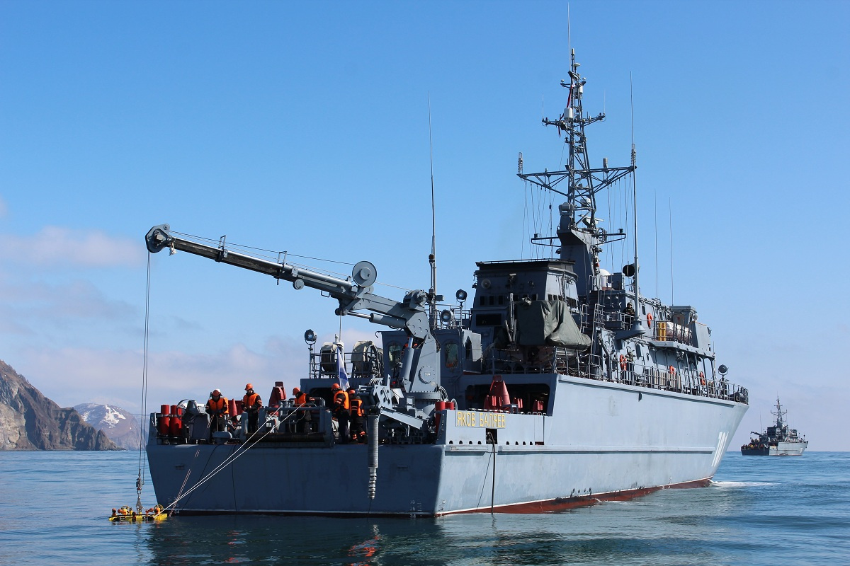 На Камчатке морские тральщики ТОФ «Яков Баляев» и «Анатолий Шлемов» провели совместное противоминное учение