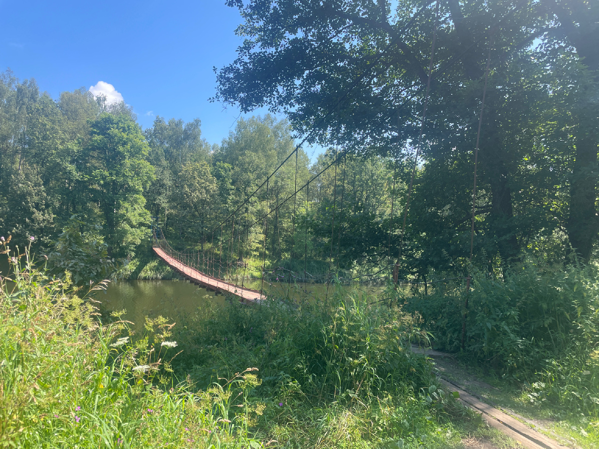 Подвесной мостик через Днепр давно успел стать местной достопримечательностью. Он был сооружен еще в советское время для кратчайшего пути, по которому ходили на работу жители села, работающие преимущественно на промышленных предприятиях, расположенных вблизи Верхнеднепровского. Сейчас он служит у дорогобужан и одним из излюбленных мест для отдыха. Не знаю, как сейчас, а раньше народ называл его словом "висячка". Гостям города этот мостик предлагается к посещению как местная достопримечательность, наряду с глобусом. И все это было бы голословно, если бы не случай. Весной 2023 вода в Днепре поднялась так, что глыбами льда мостик сломало. Что тут началооось.. Очень, очень много дорогобужан взволновались по этому поводу. Поднялся такой резонанс, что мостик очень оперативно местные власти восстановили, в еще лучшем виде. Возможно, многие сами даже от себя не ожидали, как дорог им оказался этот мостик. Признаюсь, я тоже в их числе. Казалось бы, нет у меня необходимости добираться через