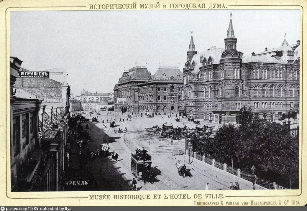 Вид на Охотный ряд из окон Националя. Сейчас на месте торговых рядов гостиница Москва.