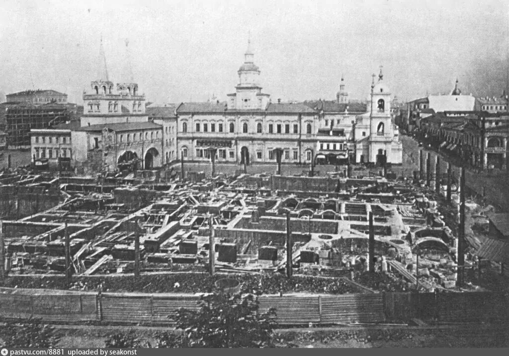 Вид в другую сторону. Из этого кадра уцелел только Большой театр (видна крыша вдалеке). На месте церкви сейчас здание Госдумы. На месте торговых рядов - гостиница Москва.