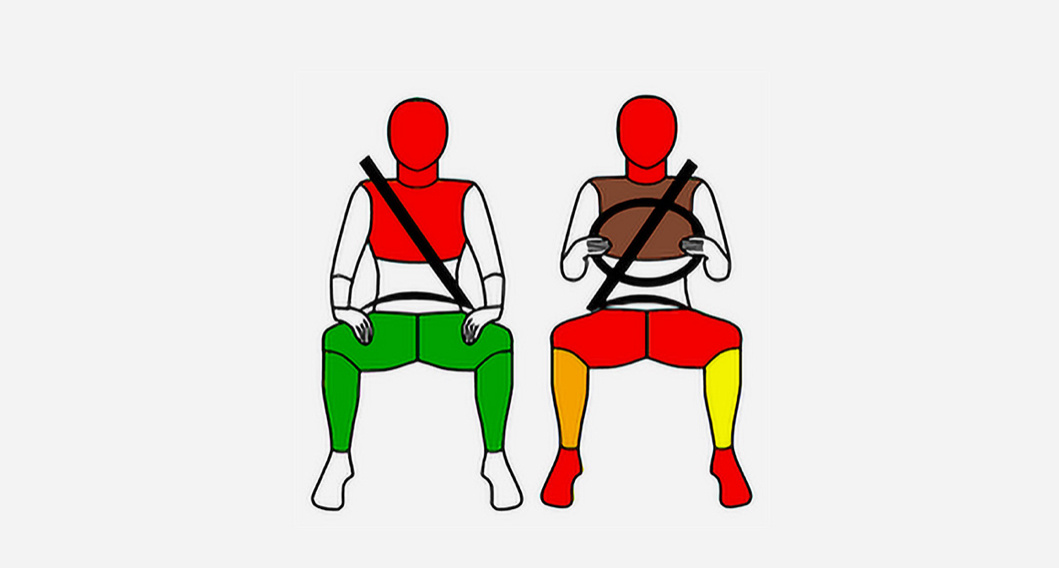 Результаты теста показали, что только ноги пассажира оказались в безопасности - это единственная "зеленая" зона. Однако ребра пассажира были сломаны, а голова сильно ударилась о переднюю панель.
