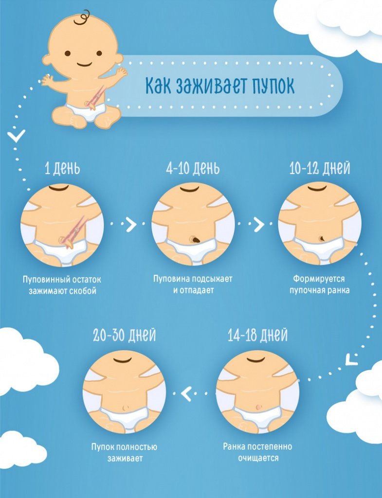 У вас родился малыш! И вместе с ним родилось много вопросов по уходу за ним. Среди них: «Как же ухаживать за пупком?» Согласно современным рекомендациям ВОЗ, в особом уходе за пупком новорожденного. Создание стерильных условий не требуется, за исключением содержания его в чистоте и сухости. Рассмотрим основные рекомендации: 1.Необходимо тщательно мыть руки и стараться избегать прикосновений к пупку. 2.Следить за тем, чтобы подгузник не закрывал и не прижимал остаток до того момента, пока он не отпадет. При надевании подгузника его край не должен касаться до пупка. 3.Ребенка можно купать в обычной воде, кипятить воду - необязательно. 4.Необходимо избегать попадания мочи/кала на незаживший пупок. Если это произошло, аккуратно смыть водой и промокнуть чистым полотенцем. 5.Не нужно обрабатывать пупок красящими растворами (йод, зеленка, фукорцин) перекисью, спиртовыми салфетками и другими антисептическими средствами. В какой ситуации нужно насторожиться и обратиться к врачу? ❗