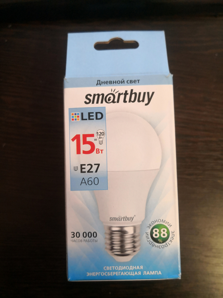 Лампочки светодиодные, Smartbuy, коробка от новых, а стояли такие же, но на 20 Вт. А вчера звонит жена и говорит что одна лампочка потухла. После работы зашёл в магазин и взял две новых. Подумал махну сразу две, одна "старая" пусть лежит на случай подменить. Ремонтом этих лампочек я не занимаюсь. Ибо ну их )) Так вот по поводу подсвечивания. Я сначала думал что возможно где-то "подтекает" проводка. Но эта мысль отпала , когда увидел что подсвечивает одна лампочка. Ну и особого внимания этому не придавал, до вчерашнего вечера.