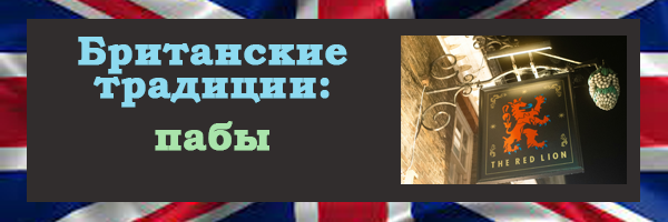 Традиционные пабы легко узнать по ярким вывескам. Ещё в 1357 году закон требовал, чтобы все таверны и пивные имели вывески, чтобы их можно было легко найти. Поскольку большинство посетителей были неграмотными, вывески украшали изображениями животных, звёзд или ангелов. Эти символы позже стали названиями пабов, которые сохранились до наших дней.