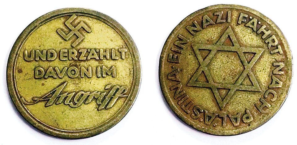 Офицер СС Леопольд фон Мильденштайн и представитель Сионистской федерации Курт Тухлер вместе совершили поездку по Палестине в течение шести месяцев, чтобы оценить там развитие сионизма. Основываясь на своих наблюдениях из первых рук, фон Милденштайн написал серию из двенадцати иллюстрированных статей для важной берлинской газеты «Der Angriff», вышедшей в конце 1934 года под заголовком «Нацист путешествует в Палестину». В статьях выражается большое восхищение новаторским духом и достижениями еврейских поселенцев. Сионистское саморазвитие, писал фон Милденштайн, породило новый тип евреев. Он восхвалял сионизм как великое благо как для еврейского народа, так и для всего мира. Родина евреев в Палестине, писал он в своей заключительной статье, «указала путь к исцелению многовековой раны на теле мира: еврейского вопроса». Der Angriff отчеканила специальную медаль со свастикой на одной стороне и Звездой Давида на другой, в ознаменование совместного визита СС и сионистов. Через несколько месяцев после появления статей фон Мильденштайн был назначен главой отдела по еврейским делам службы безопасности СС (СД), чтобы более эффективно поддерживать сионистскую миграцию и развитие.
