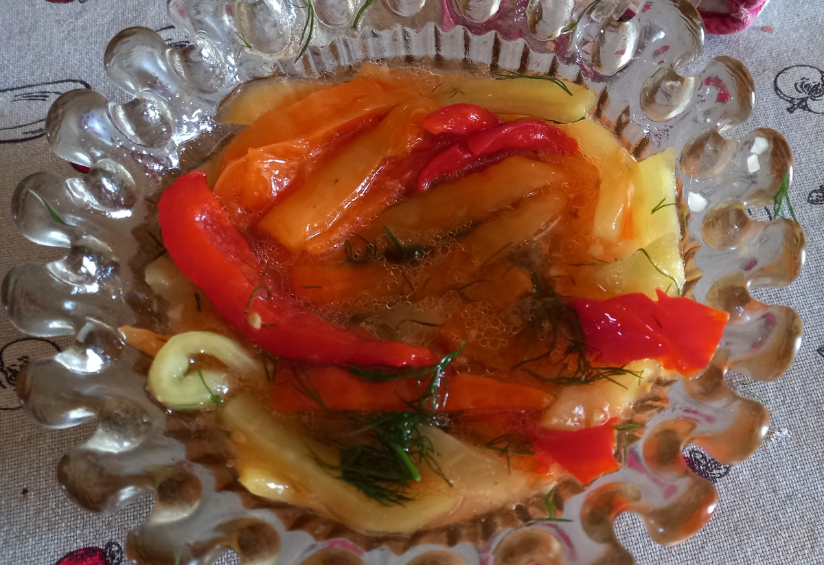 Запекаем целые сладкие перцы примерно 20 минут с разных сторон. Затем выкладываем их в целлофановый пакет, закрываем. Тем временем готовим заправку. Трем несколько помидор на мелкой терке, добавляем 2 ст.ложки растительного масла, 2 зубчика чеснока мелко нарезаем, добавляем 1 ч.ложку сахара, соль и зелень по вкусу. Достаем из пакета перцы, чистим их от семян и кожицы, нарезаем полосками и добавляем их в заправку. Перемешиваем. Салат готов!