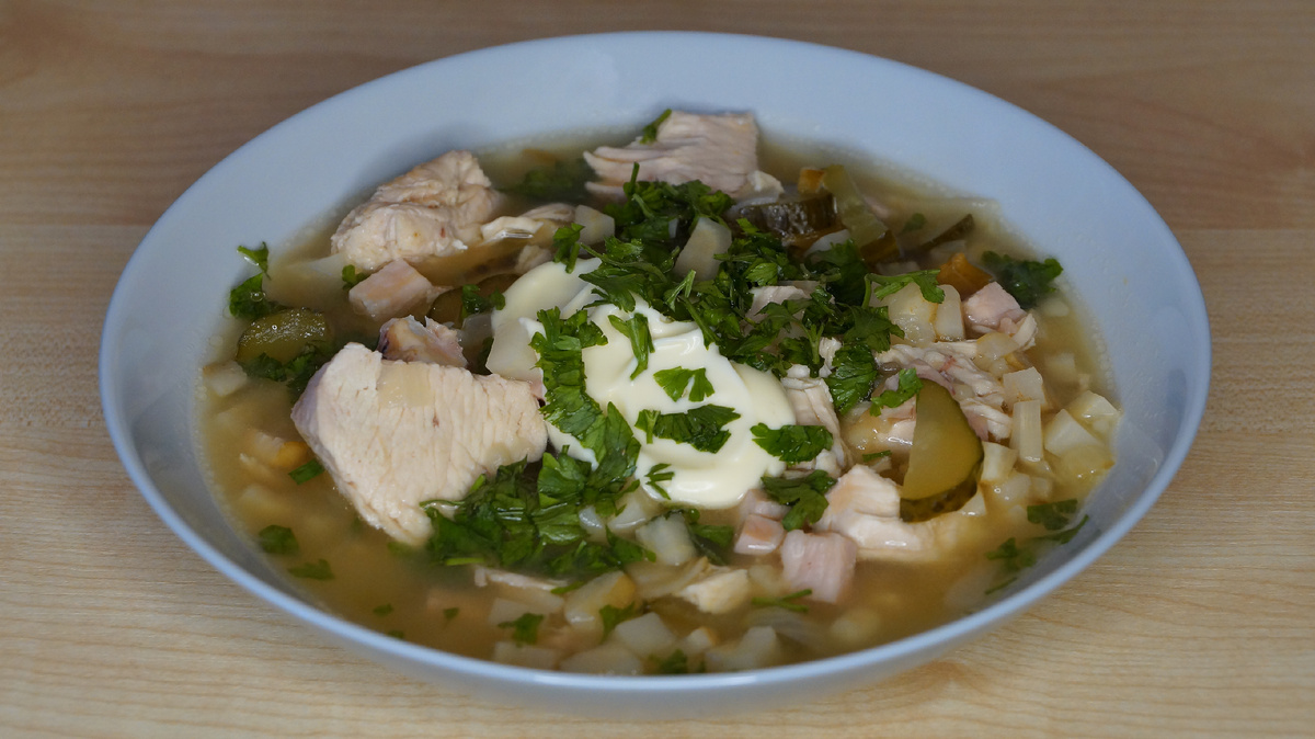 Калья - исконно русское блюдо, с ударением на последний слог, даже была поговорка: "где калья - там и я". Изначально варили ее из рыбы, но впоследствии стала распространенной мясная калья, а уже она дала начало современному рассольнику. Итак, встречайте: калья мясная! Ингредиенты: Приготовление: сварить бульон из курицы с добавлением небольшого количества соли, перца и лаврового листа. Убрать курицу из бульона. Лук порезать мелко и спассеровать. Коренья почистить и порезать мелким кубиком. Ветчину также порезать мелким кубиком, соленые огурцы нарезать полукольцами. От бульона отлить стакан-полтора. Оставшийся бульон довести до кипения, добавить туда лук и коренья, дать снова закипеть. В это время на сухой сковороде обжарить муку до золотистого цвета, развести ее бульоном (который отлили). В закипевшую кастрюлю долить муку с бульоном, положить ветчину и огурцы, варить на среднем огне до готовности (ориентироваться на степень проваренности корней, у нас ушло около 25 минут). Курицу порез