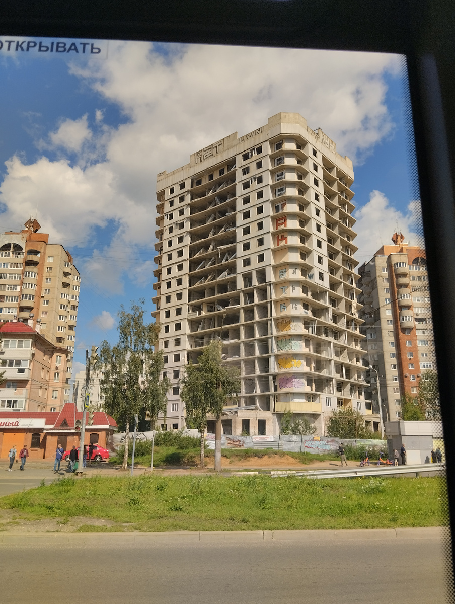 Привет, друзья! Есть у нас за Волгой недострой. Стоит уже 13 лет, сколько всего прошло за эти годы! Люди платили и платят ипотеки, а живут "на съеме" до сих пор, многие продали своё единственное жилье или вложили мат капитал и остались ни с чем, почти ни с чем- с договором на долевое строительство. Были суды, бесконечные собрания обманутых дольщиков, бесконечные разборки и вот наконец-то свершилось. Появился инвестор, который выкупил этот недострой у мэрии и начался "движ" После экспертизы было принято решение оставить только монолит самого дома, внешние панели все разобрать, так же уже убрали все пластиковые окна, которые за столько лет простоя пришли в негодность . После демонтажа внешних стен будут возведены новые, уже кирпичные стены. Дом этот 16ти этажный. Буду рассказывать про то, как идут дела этом доме. Почему? Я имею к нему некоторое отношение. Вот тпк выглядел дом 1 августа. Ваша @leila