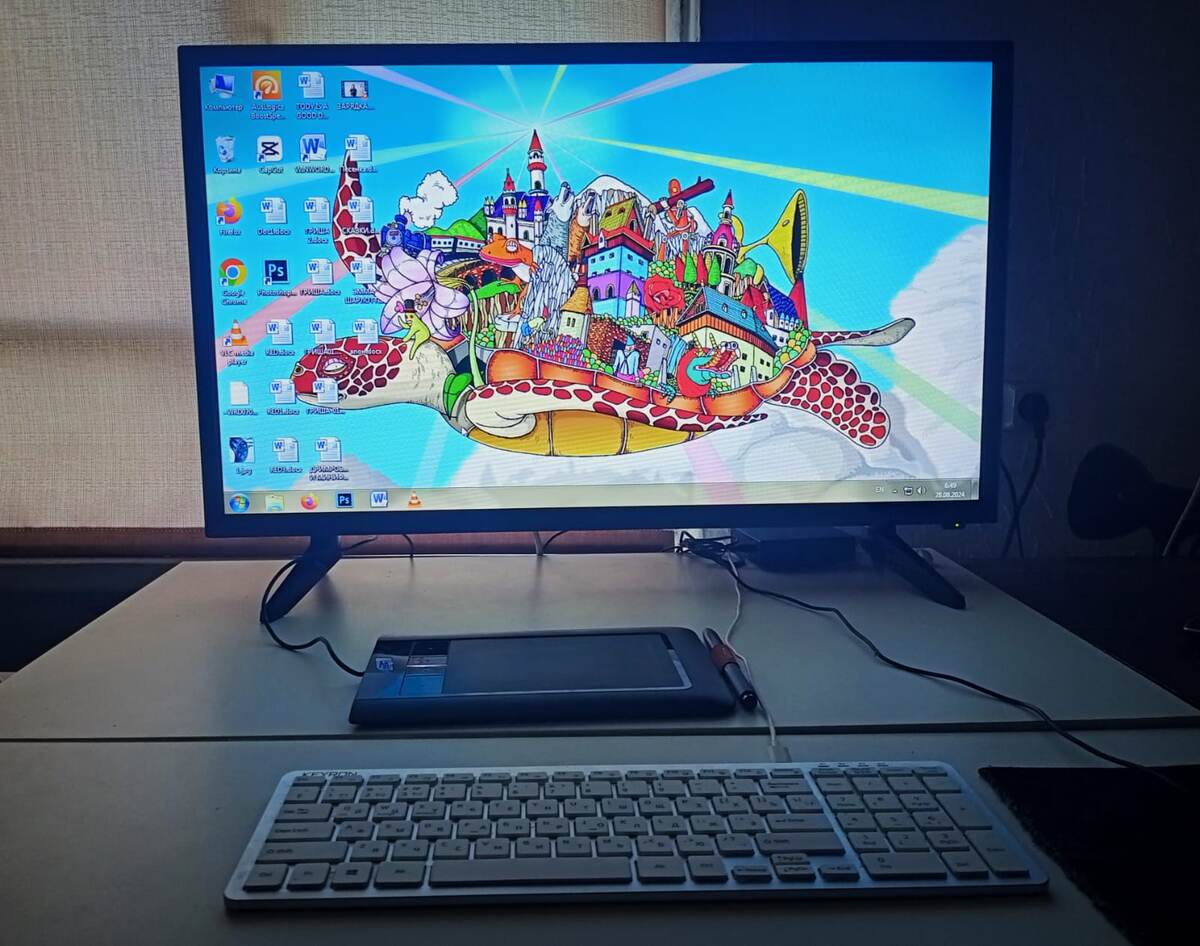 Миг (326). У Гриши появился планшет для рисования. Нет, не специально приобретённый, вынутый из закромов. Ждал товарищ своего часа, дождался. Гриша начал делать интересные вещи. Берёт кадр из мультика и перекрашивает детали... Делать это мышкой сложно. Пером - легче. Помните, кто-то хотел творчество. ТАДАМ. На мою улицу приполз праздник. Есть творчество. Конец. П.С. На рабочем столе у Гриши черепаха с плоским миром))) __ МИГ. Что это? Это статья, под которой можно по желанию опубликовать фото сегодняшнего дня. Любое. Портрет, пейзаж, натюрморт, не важно. Цель? Остановиться и увидеть жизнь вокруг. Правила: Будьте людьми. Первая статья на тему вот. Подборка на тему МИГ вот.