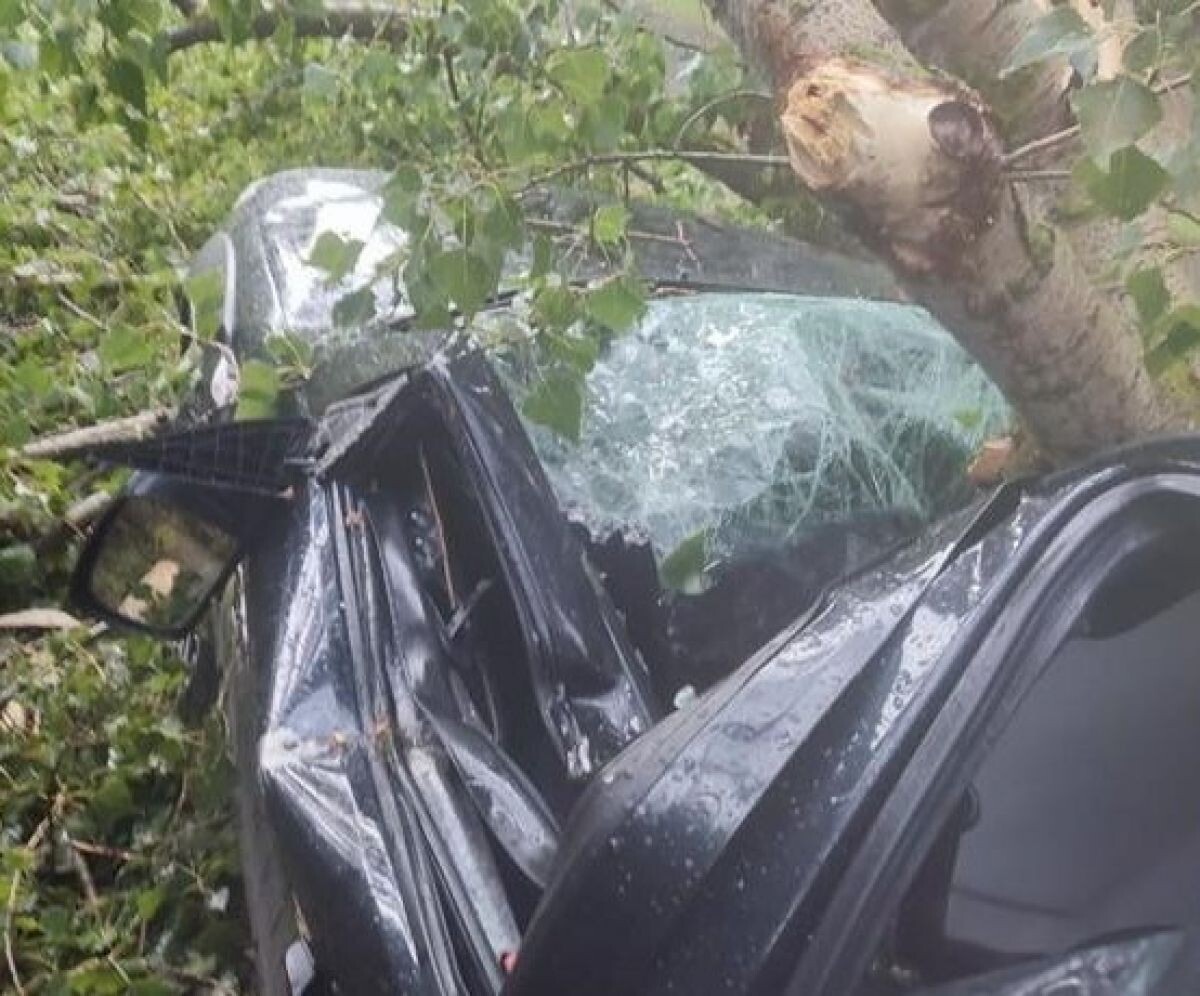 На машину с ребенком в салоне упало поваленное ветром дерево в воронежском селе