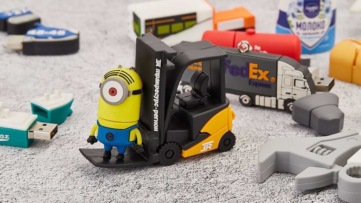 Как настоящие! Почему флешки ПВХ пользуются таким огромным спросом? Флешка в форме конкретной модели автомобиля, торта с нужной формой и расцветкой, в виде гаечного ключа, здания, флакона духов, сумочки, кирпича, человечка в определенной спецодежде… Или в виде Вашего логотипа! Фантастика? Нет. Это реальность! С этими неординарными бизнес-презентами из ПВХ (поливинилхлорида) вы станете более узнаваемыми, интересными и запоминающимися. Поливинилхлорид (ПВХ, PVC, полихлорвинил или просто винил) — термопластичный полимер, «мягкий пластик». Сначала он жидкий, текучий. При нагревании в процессе изготовления флешки — твердеет, но все равно остаётся немного пластичным. ПВХ — наш старый «сосед»: недавно мир отметил 100 лет, как материал был разработан во Франции гениальным химиком Фрицем Клатте. Именно из пластичного ПВХ делается искусственная кожа, зубные щётки, игрушки, линолеум, спортивное, медицинское оборудование. А из твердого ПВХ создают грампластинки, оконные рамы, кредитки, рекламные щ