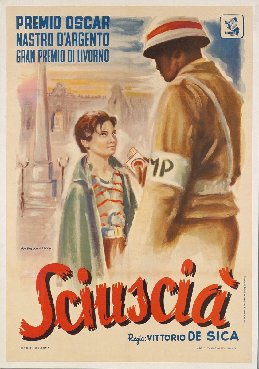 До того, как снять "Похитители велосипедов" - беспрецедентную картину эпохи, де Сика поставил этот фильм. Это тоже про детей. Фильмы про детей, но не для детей, наверное, снимать очень не просто. Не каждый на это решится - есть вероятность сфальшивить. "Шуша" - история двух мальчишек в послевоенном Риме. Название фильма - жаргонное словечко произошло от двух английских слов shoe-обувь и shine-блестеть - так называли уличных чистильщиков ботинок.