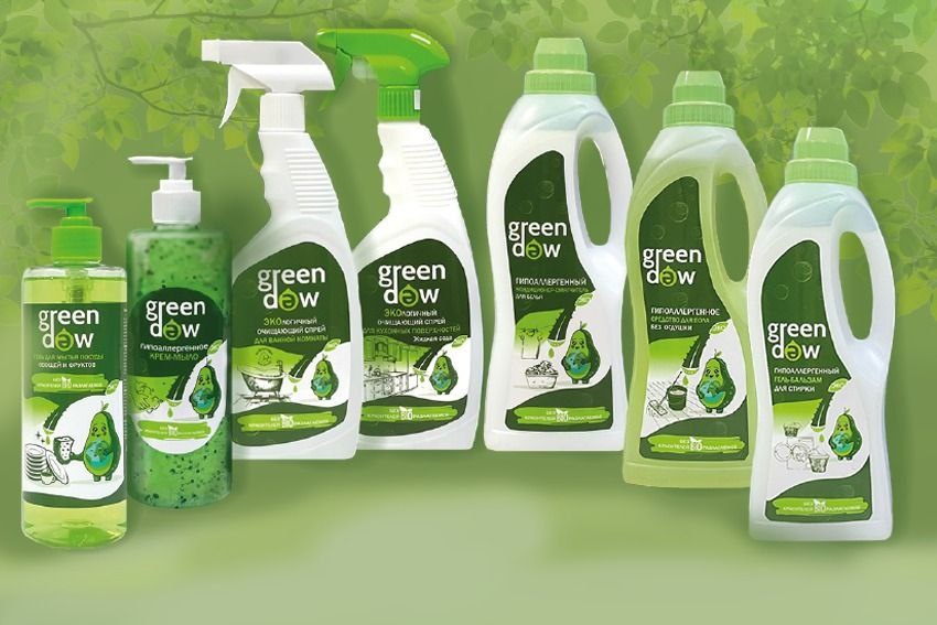 Экологичная бытовая химия Green DEW от российского производителя «ЭкоЛюкс» обладает превосходным качеством, идеальным соотношением компонентов и защитными свойствами. Уникальная продукция не имеет аналогов в России и производится исключительно из натуральных растительных компонентов. В экологичной линейке представлены семь эксклюзивных средств – гель для мытья посуды, овощей и фруктов; очищающий спрей для ванной комнаты; гипоаллергенное крем-мыло; очищающий спрей для кухонных поверхностей; гипоаллергенный кондиционер-смягчитель для белья; гипоаллергенное средство для пола без отдушки; гипоаллергенный гель-бальзам для стирки.
