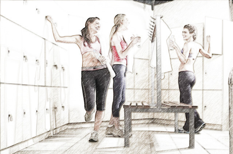 Наша раздевалка по расположению такая же, как у парней. Заходишь – справа душевая, дальше – место, где, собственно, девчонки переодеваются в спортивную форму и обратно. Вдоль одной стены стоят скамейки, а вдоль противоположной, – узкие шкафчики, куда складывают вещи. Третью стену занимает широкое окно, стекло которого до середины закрашено белой краской – чтобы с улицы не подглядывали.
