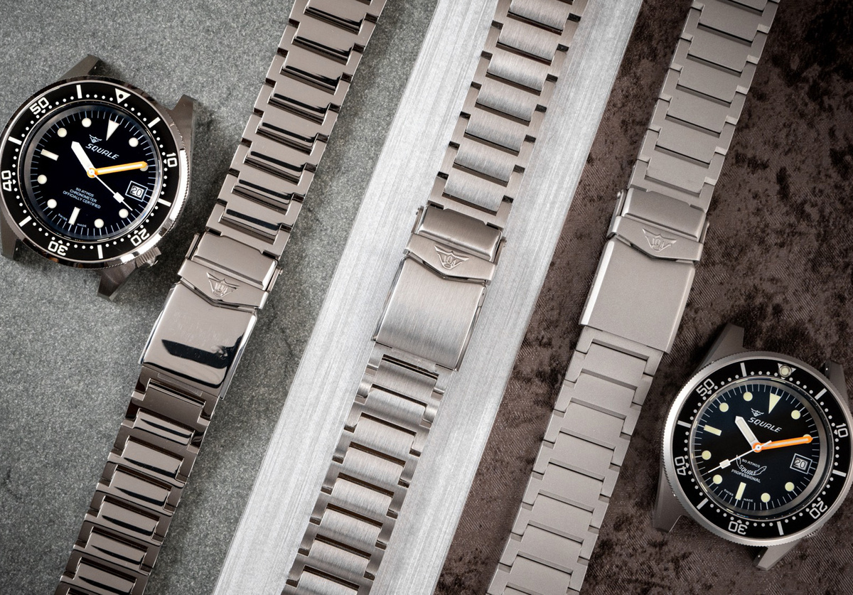 После многих лет исследований и разработок, направленных на то, чтобы придать стиль и функциональность классическим моделям Squale, компания представила стальной браслет для коллекции 1521. Разработка этого дополнения к культовой серии потребовала времени и многочисленных испытаний, чтобы максимально удовлетворить всех владельцев 1521 серии. Дизайн браслета вдохновлен легендарными браслетами 60-х годов, которые благодаря своему легкому весу удобно облегали запястье. Цель состояла в том, чтобы сохранить ту же легкость и комфорт браслета при использовании цельных и прочных стальных звеньев, удерживаемых винтовыми штифтами для обеспечения удобной и безопасной его регулировки. Браслет оснащен двойной застежкой, предотвращающей его случайное открытие. Кроме того, застежка снабжена удлинителем для дайвинга, специально предназначенным для ношения часов с гидрокостюмом. Новый стальной браслет для модели 1521 доступен в трех вариантах обработки: полированный, сатинированный и пескост