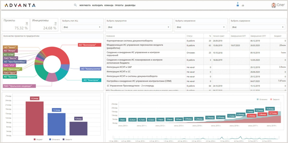 Пример дашборда системы управления портфелем проектов ADVANTA