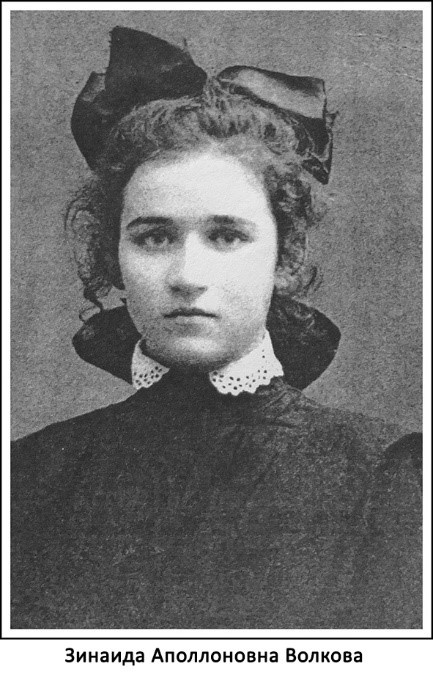 Зинаида Аполлоновна Волкова (1894–1974) – младшая дочь Волковых, крещена в Николо Тропинской церкви Ярославля. В 1914 году окончила 3-ю женскую гимназию.