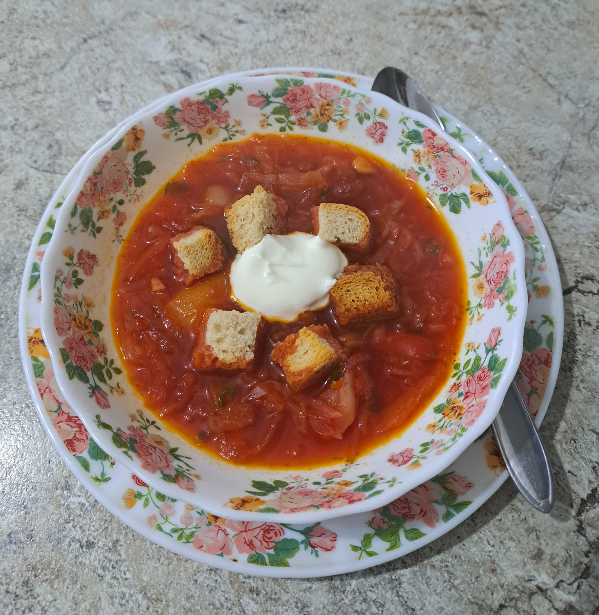 Хочу поделиться своим приготовлением борща .Но сначала хотелось бы внести предысторию его возникновения. История борща - это длинная и запутанная история, полная мифов и легенд. Точное происхождение борща точно не установлено, но есть несколько теорий, которые пытаются объяснить его появление. Основные теории: * Тюркское происхождение: Одна из самых распространенных теорий гласит, что борщ пришел к нам от тюркских народов. Слово "борщ" происходит от тюркского слова "борч" или "боршак", что означало кислую жидкость, которую готовили из кислой свеклы и других ингредиентов. Тюркские народы, возможно, принесли рецепт борща на территорию современной Украины и России. * Славянское происхождение: Другая теория утверждает, что борщ - это традиционное славянское блюдо, которое существовало задолго до появления тюркских народов. Слово "борщ" может быть связано с украинским словом "борщ", которое означает "свекла". * Смешанное происхождение: Вероятно, борщ возник как результат смешения традиц