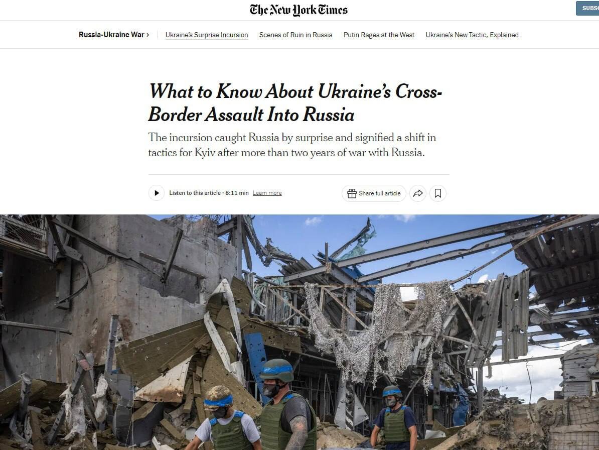 «The New York Times» опубликовал большой аналитический материал, в котором обозначил причины наступления ВСУ на Курскую область: 1. Украина хочет отвлечь Россию от основных задач СВО; 2. Уровень боевого духа ВСУ упал; 3. Украина пытается поднять уверенность Запада, что она еще что-то может; 4. Киев хочет убедить Вашингтон, что они могут пойти в контрнаступление на территории России В любом случае американское издание убеждено в том, что победа в украинском конфликте уже в руках России независимо от итогов грядущих президентских выборов в США. Что касается отношения Запада к специальной военной операции, то он относится к ней как к локальному, поэтому и не признает за собой значительных обязательств. Моя хата с краю, я ничего не знаю. Их девиз по жизни. Ко всему прочему, как сообщает Пентагон, США по-прежнему пытаются выяснить цели вылазки Украины в РФ. Правда, не совсем понятно, зачем? Ведь, по данным Bloomberg, Украина «получила благословение» от руководства США и ЕС