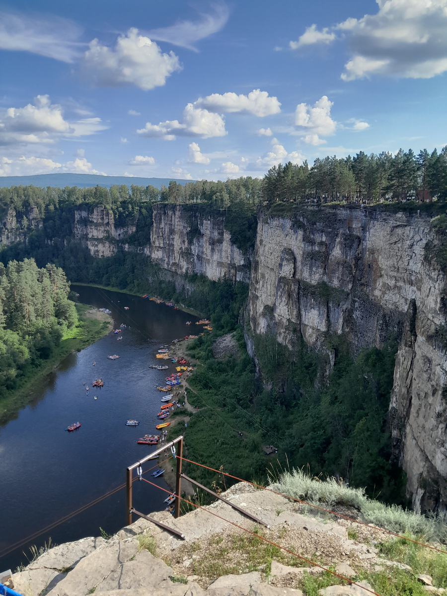Красивейшее место, где я давно хотел побывать. И вот планы сложились, и в 1й день нашего автомобильного отпуска в июле 2024, мы впервые заехали в это место. 1й день нашего автотура был насыщен: выехали из Екатеринбурга на 2х машинах, заехали на прогулку в "Оленьи ручьи" (я даже не пошел, а досмотрел сны в машине) и потом рванули к притёсам, через Михайловск, Месягутово. Ночевка у нас была намечена в Сатке. По дороге случился забавный случай: уже подъезжая навигатор показал поворот направо в деревне Межевой. Какой-то хилый мосточек, ладно, поворачиваем, заезжаем, частные дома. Фломастером на большой картонке "ЗДЕСЬ НЕТ ДОРОГИ НА ПРИТЁСЫ!!!". Окликнули мужика у частного дома. Вежливо. Тот, ладно не матерясь, поведал как мы все их тут достали "турысты" на их улочке и послал нас... дальше до Сулеи, там, дескать, свою своротку увидите. Доехали, увидели, свернули. Дорога к Притесам местами не сахар, зато машин много навстречу, сомнений в верности пути нет. Через недолгое время прибыли к цел
