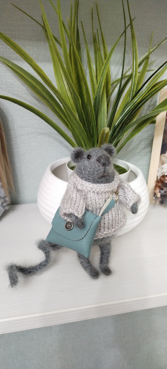 Соскучилась по вязанию.Забежала в рукодельный магазин рядом с работой,выбрала мохер.Тонковатый.Пришлось вязать в две нити,крючком,как я люблю,без всякой схемы , наобум . Мыша-крыса получилась хорошенькой,тискательной (приятно-тактильной),но вредной.Потому что сфотографировать красиво так и не получилось её (его).В реальности гораздо симпатичнее😄. Рост 14см.Свитерок связан спицами. Живых крысок я не любитель.А вот вязаных "мохнатиков" люблю.