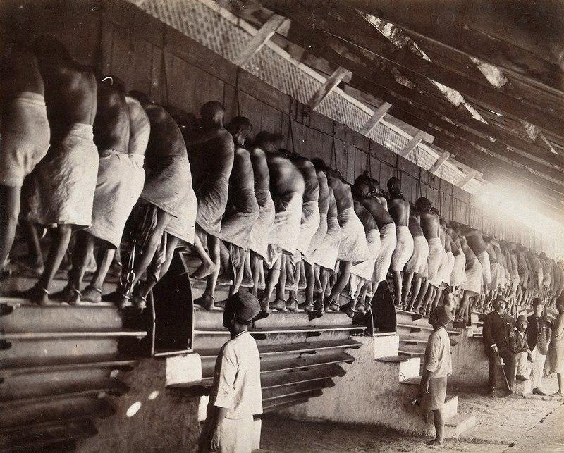 Одной из таких тюрем была тюрьма Янгуна в Мьянме в начале 20 века. Заключенные, прикованные наручниками, вращали ногами валы мельниц, что приносило прибыль властям. Эта практика применялась не только в Мьянме, но и в других странах мира.