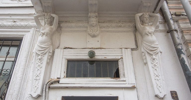 Дом в стиле модерн стоит в Большом Головином переулке с конца XIX века. Предположительно, его построили в 1875 году по проекту архитектора Николая Воскресенского (неопределенность связана с тем, что мастера предпочитали не упоминать свои имена в спорных проектах, да и у москвоведов есть некоторые доводы, опровергающие эту точку зрения). Характерной особенностью дома являются уникальные скульптуры — беременные кариатиды, которые, с одной стороны, служили заметной вывеской для посетителей, а с другой — предостерегали работниц публичного дома от неаккуратности, наглядно демонстрируя последствия.