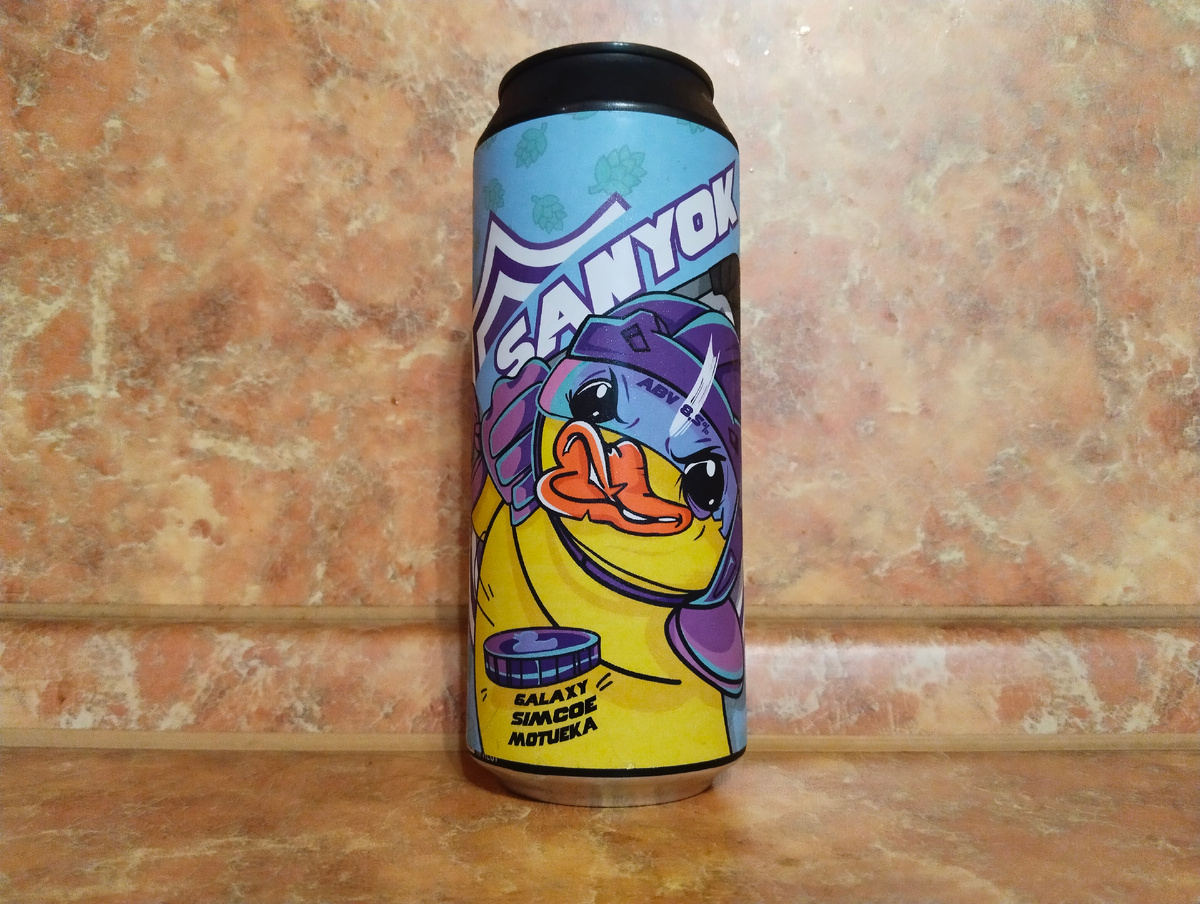 Зашёл я, значит, в разливайку, а там продавец знакомый выкатил передо мной аж 5 баночек неопробованных мной пив. Сказал - для меня специально подготовил. Ну и взял я всё на радостях не посмотрев на сроки годности... Получилось странно - обычные ипушки были свежайшими(о них тоже напишу), а вот, мутнячок был апрельский. Учитывая тот факт, что покупка состоялась в начале августа, а дегустация во второй его половине, NEIPA было уже почти 4 месяца... Galaxy, Simcoe, Motueka - хмельной хет-трик от Великой Восьмерки. Пока с трибун орут “шайбу, шайбу!”, Sanyok мчит, как угорелый утенок, чтобы вбить гол прямо в твое сердечко. Он легко задоминирует любого противника, используя свой легендарный финт - сочный, яркий вкус с оптимальным балансом и насыщенной хмельной ароматикой. Планируешь сопротивляться? Не забудь надеть шлем. Его удар настолько крепкий, что ты крякнуть не успеешь, как он уже победил. Алкашка/плотность - 8.5%/20% IBU - ???. Стиль - NEIPA. Объём - честная баночка 0.5 л. Ц