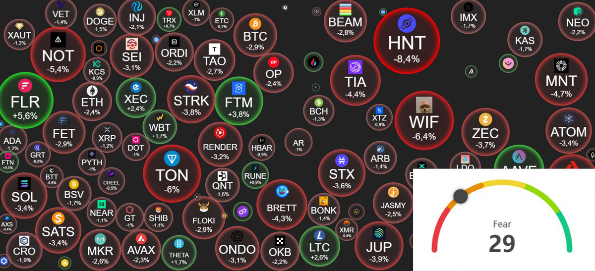 Индекс Страха и Жадности = 29 - страх.