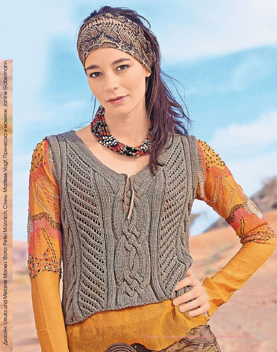 Ажурный жилет с "косами"