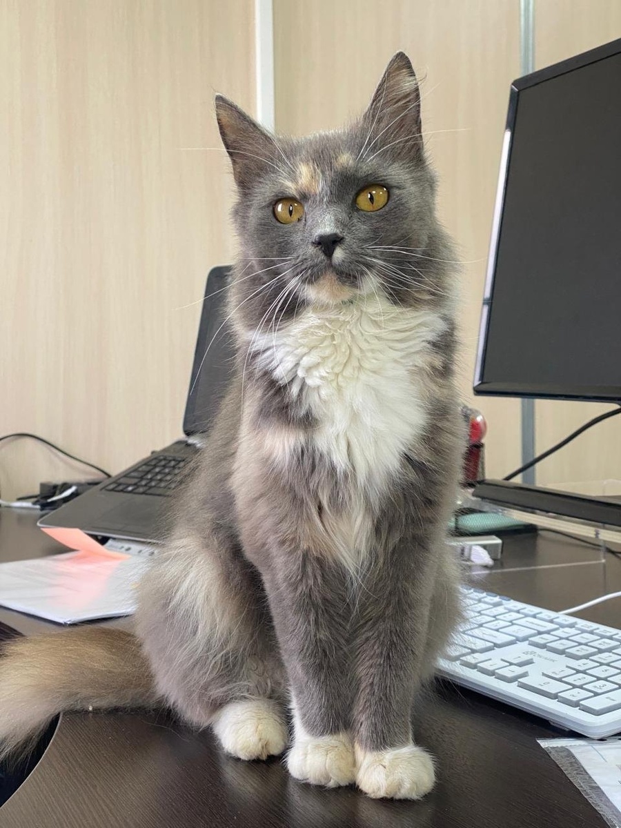 Кошечку подкинули к офисам, она живёт на работе у знакомых, но это не дело, в любой момент её могут попросит на выход, а она очень домашняя.