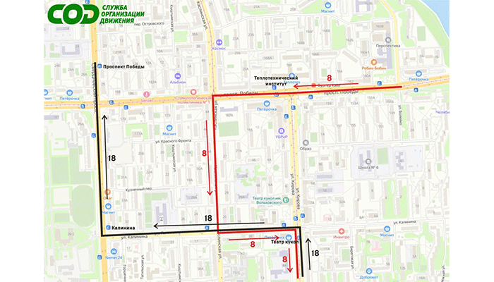 Автобус № 8 будет объезжать этот участок по улицам Каслинская, Калинина и Кирова (в направлении улицы Академика Королева). В остальном – без изменений.