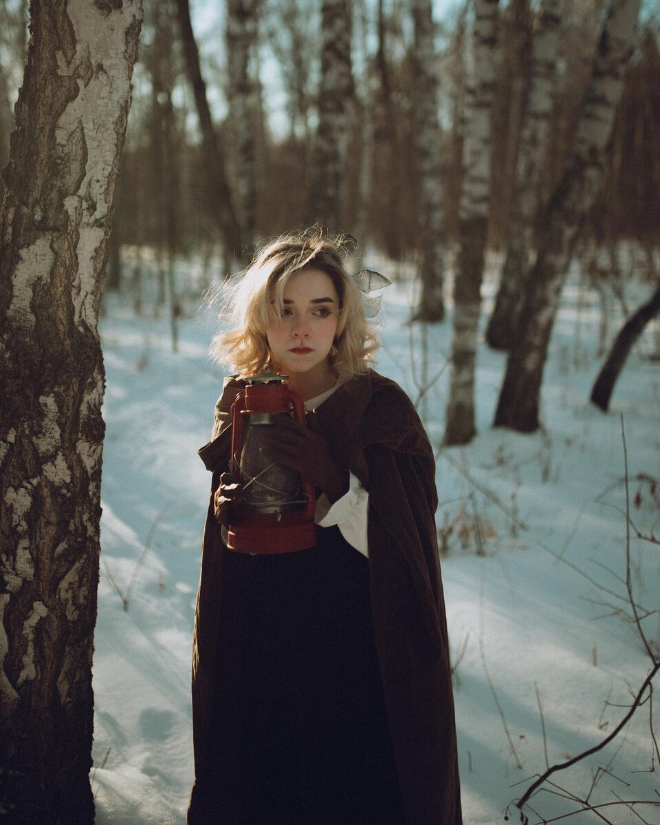 Зимняя сказка в березовой роще: таинственная красавица с фонарем