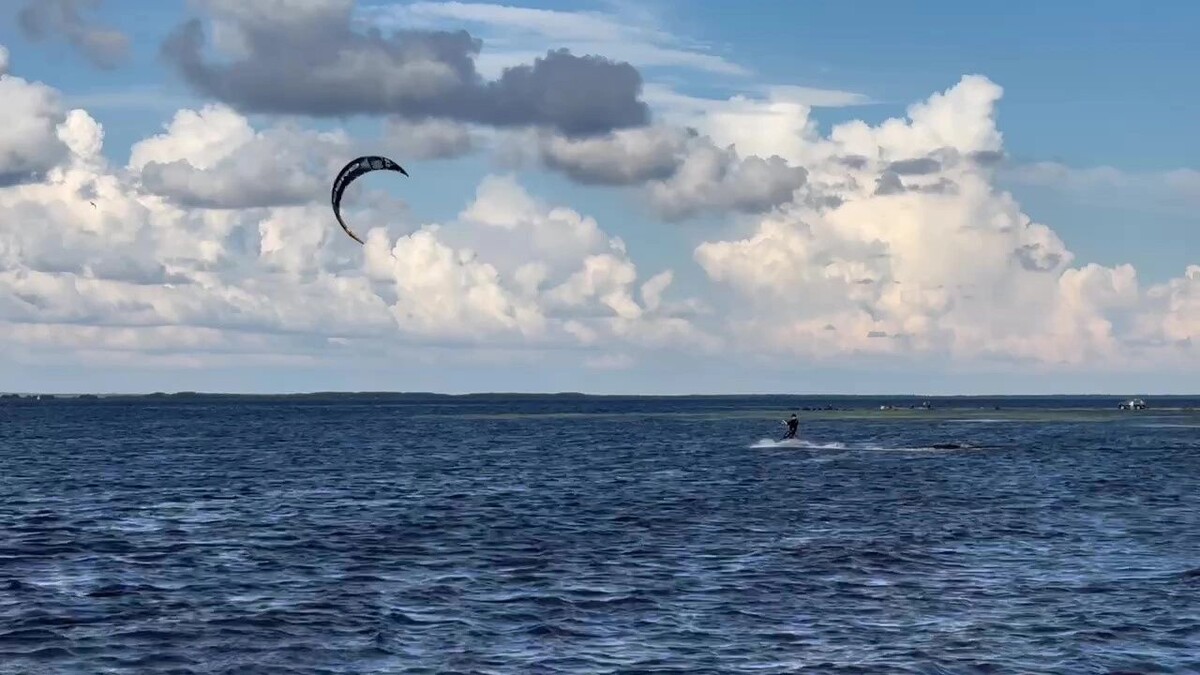 На Ямале 15 августа наблюдается усиление ветра. Однако штормовое предупреждение не остановило жителя Салехарда от кайтсерфинга, сообщил «Ямал-Медиа». Салехардца, который решил позаниматься любимым видом спорта недалеко от паромной переправы, ветер нес по волнам на приличной скорости. Из-за сильных порывов спортсмен периодически подлетал в воздух. Фото: Юлия Чудинова / «Ямал-Медиа» Стоит отметить, что в округе сегодня наблюдается ветер до 7—12 м/с, а в Приуральском, Пуровском и Надымском районах порывы достигают 15—18 м/с. Из-за неблагоприятной погоды временно не работала переправа Салехард — Лабытнанги. Паромы начали ходить спустя несколько часов, однако на судна запустили только пассажиров и легковые автомобили. Самые важные новости — в нашем telegram-канале «Север-Пресс».