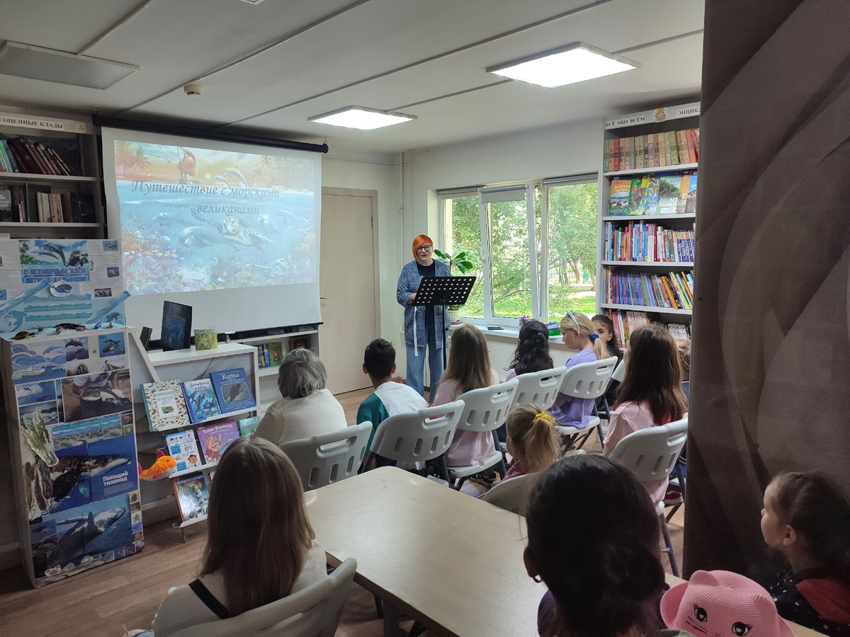 15 августа в Библиотеке семейного чтения состоялся библиодайвинг «Путешествие с морскими великанами», посвященный Всемирному дню китов и дельфинов. Во время встречи гости библиотеки познакомились не только с историей возникновения этого экологического праздника, но и с интересными фактами из жизни морских млекопитающих, многие из которых находятся под угрозой исчезновения и занесены в Красную книгу Российской Федерации и Международного союза охраны природы. Библиотекарь Елена Марьина рассказала присутствующим о видах китов и дельфинов, их пищевых предпочтениях и поведенческих особенностях. О том, что китообразные — самые крупные и наиболее разумные животные, обитающие в морях. Из-за загрязнения океанов пластиком, химическими веществами, шумового загрязнения от судоходства и рыбной промышленности их численность продолжает снижаться, а некоторые виды и вовсе исчезают, поэтому человечество может потерять уникальные виды этих животных. Затем гости ответили на вопросы викторин «Дельфиньи