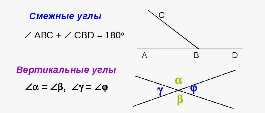 Определение смежных и вертикальных углов